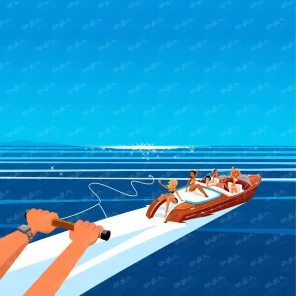 Activité nautique, Bateau, Bronzage, Bronzer, Ciel bleu, Eau, Filles, Girly, Îles, Maillot de bain, Ski nautique, Reflet, Sport, Transport, Vague