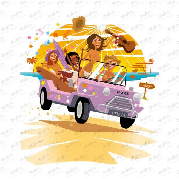 Animal, Animaux, Chapeau, Chien, Guitare, Instrument, Lunettes, Maillot de bain, Mer, Palmier, Plage, Transport, Vacances, Voiture,