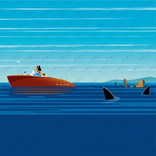 Animal, Animaux, Bateau, Humour, Mer, Mouettes, Requin, Ski-nautique, Sport, Transport,