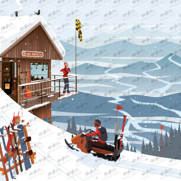 hiver, neige, chalet, montagnes, Illustration